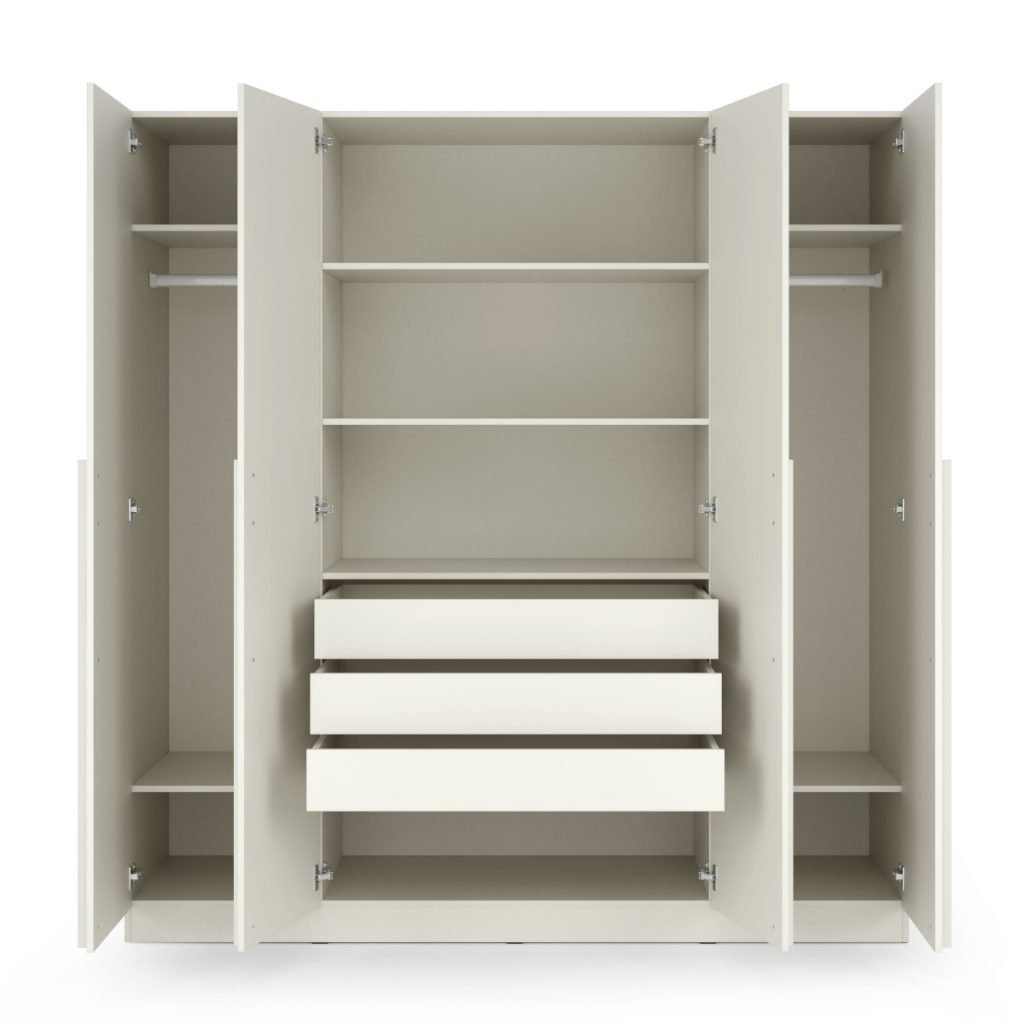 BRAGA stalčiai spintai 01 (3vnt.) – tai funkcionalus ir praktiškas sprendimas, skirtas padidinti Jūsų spintos talpą bei užtikrinti patogų daiktų organizavimą. Šis stalčių komplektas puikiai pritaikytas BRAGA kolekcijos 4 durų spintai ir leidžia efektyviai išnaudoti vidinę erdvę.
