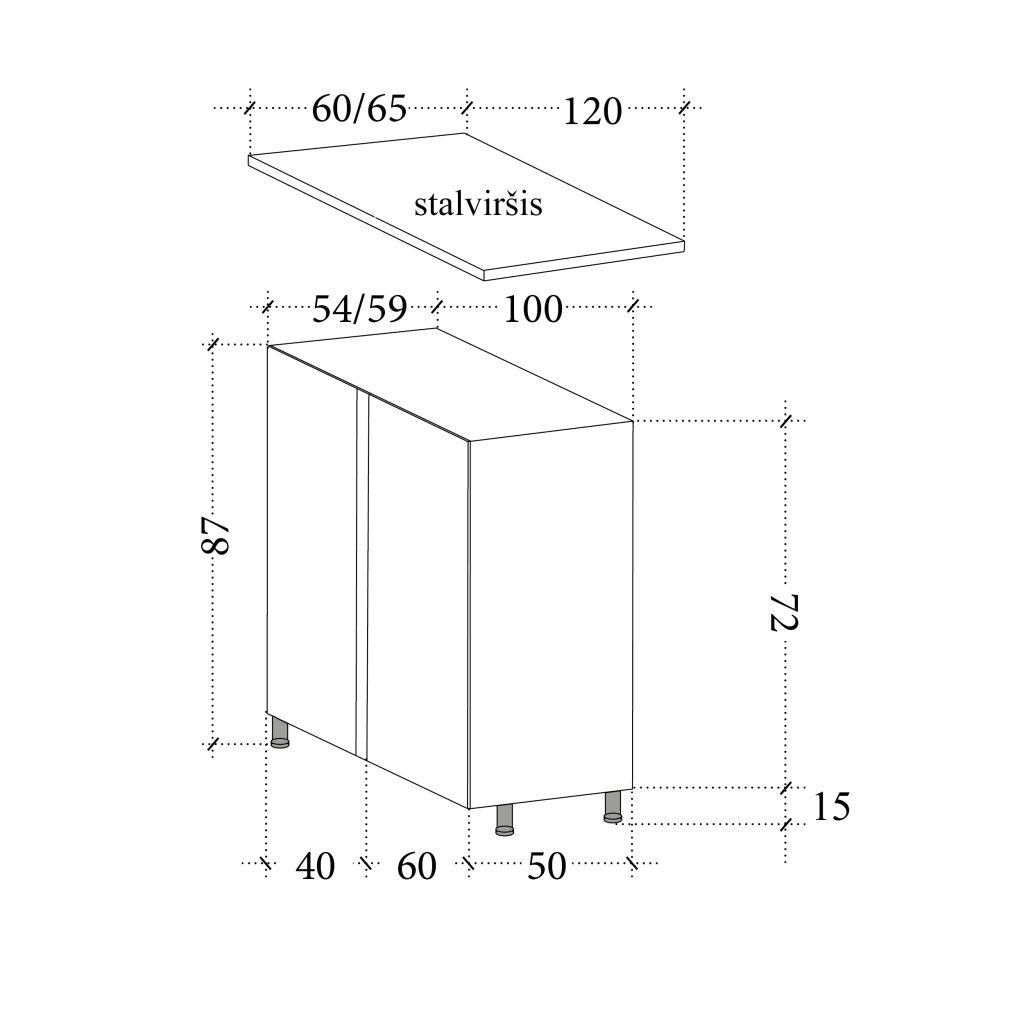 Išmatavimai: A: 87cm P: 100cm G: 52cm